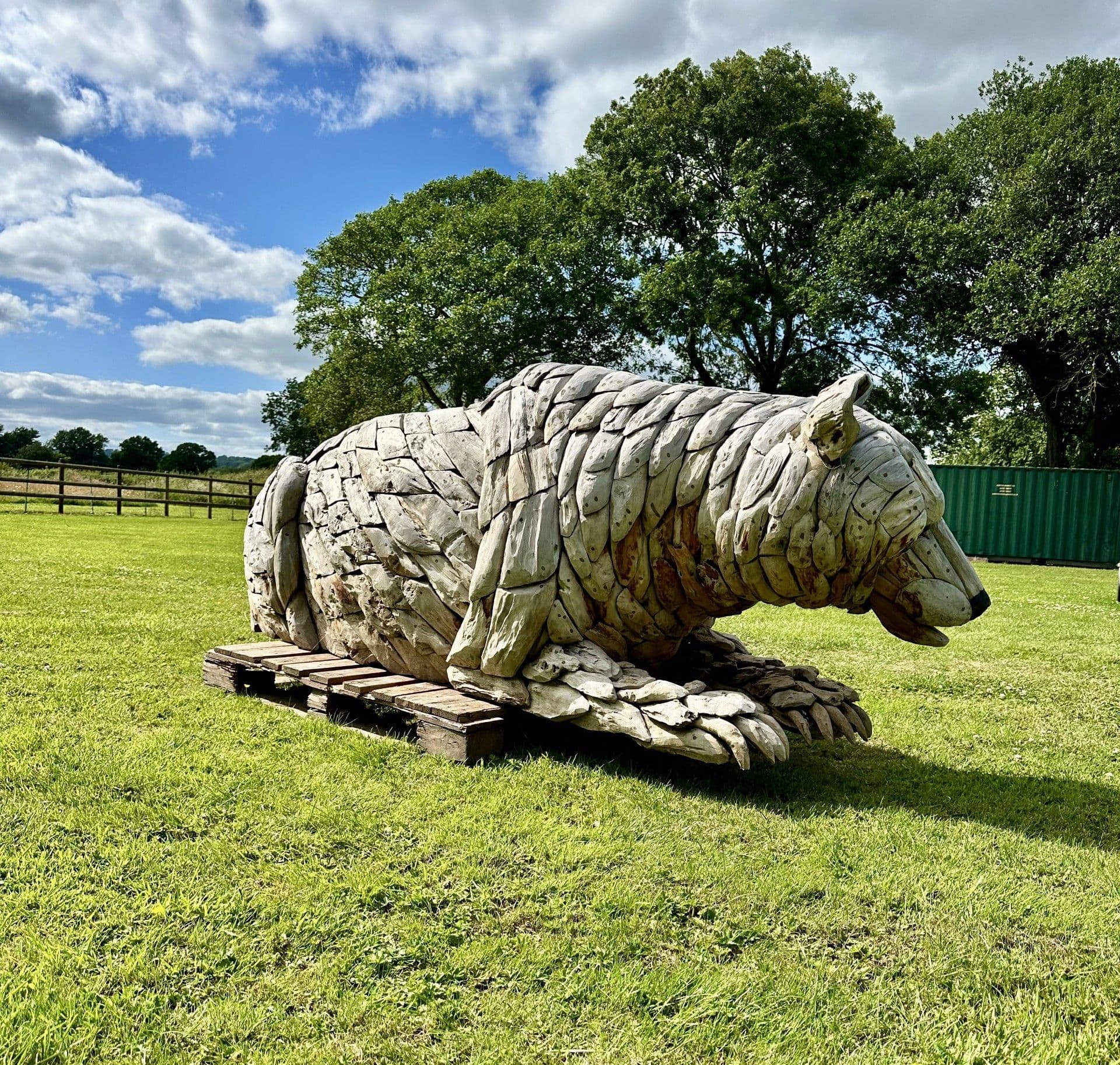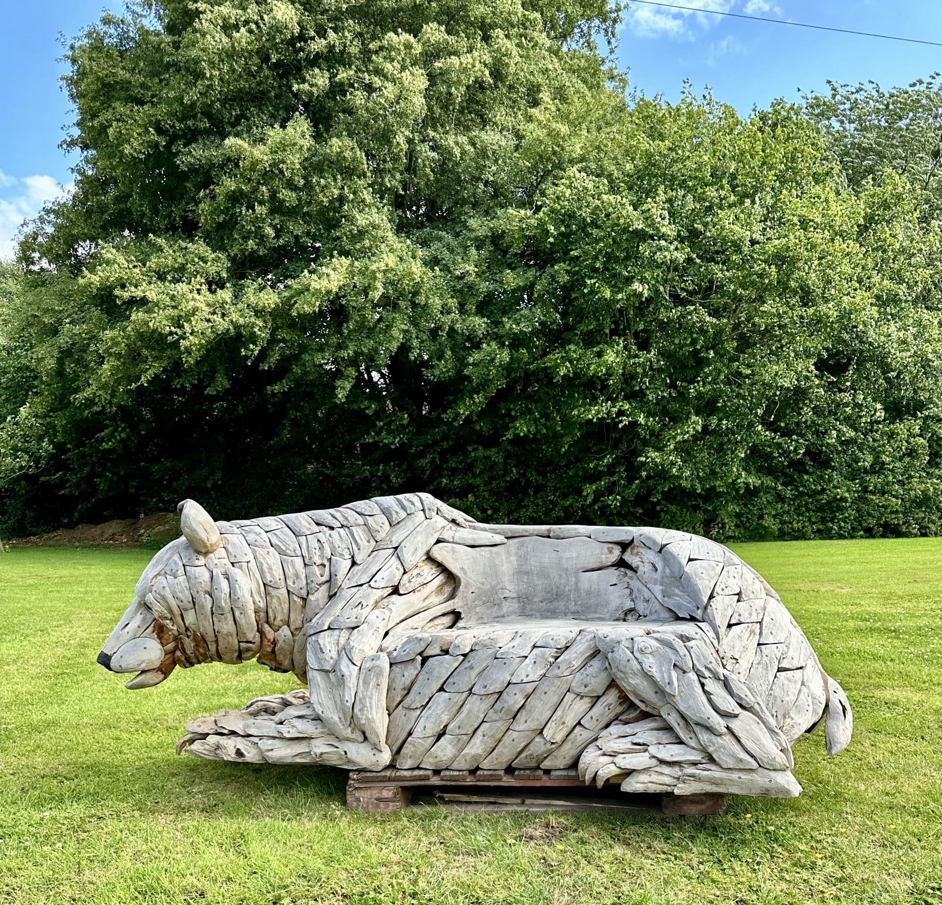 Giant Hand Crafted Teak wood Bear Statue Bench