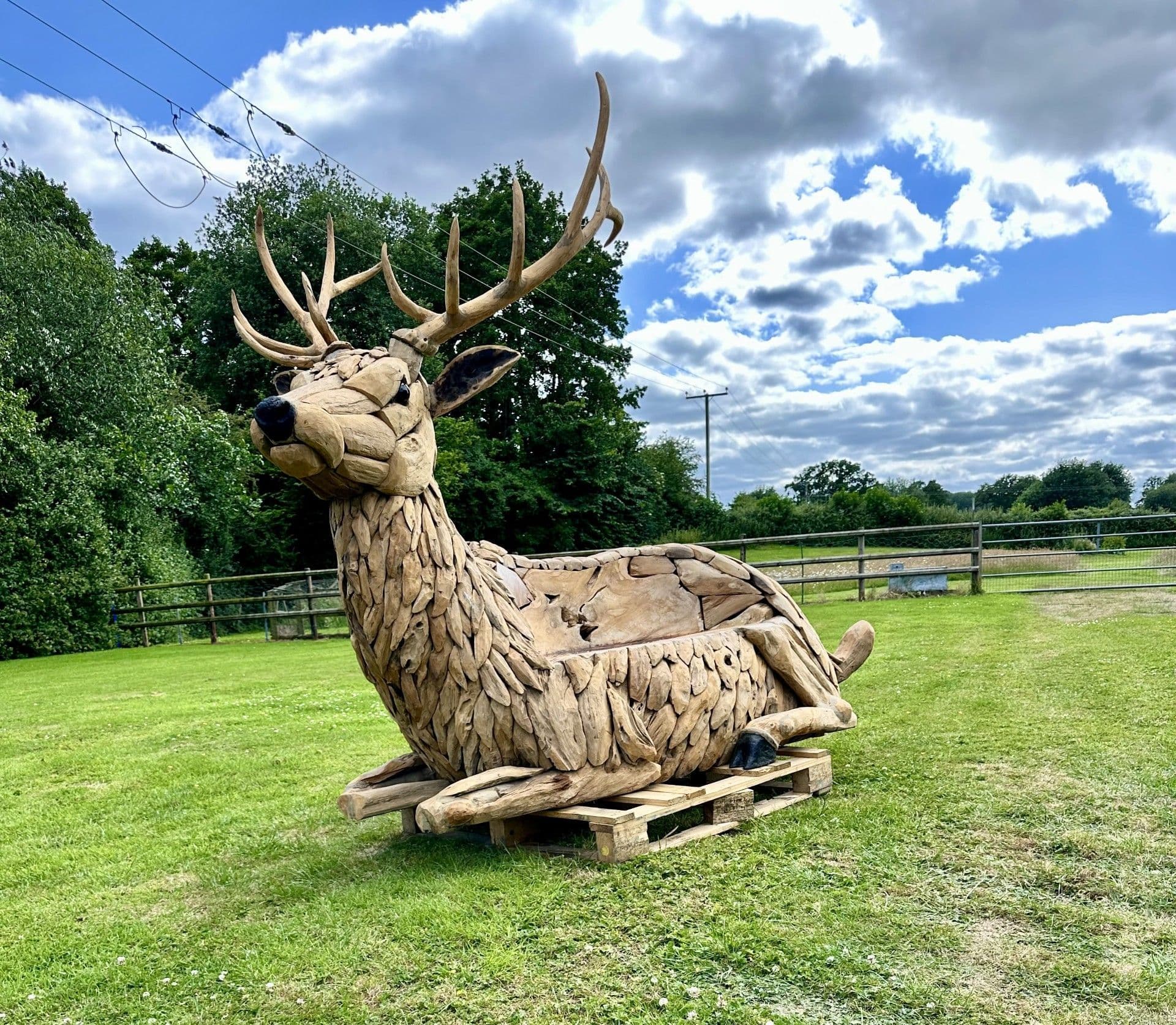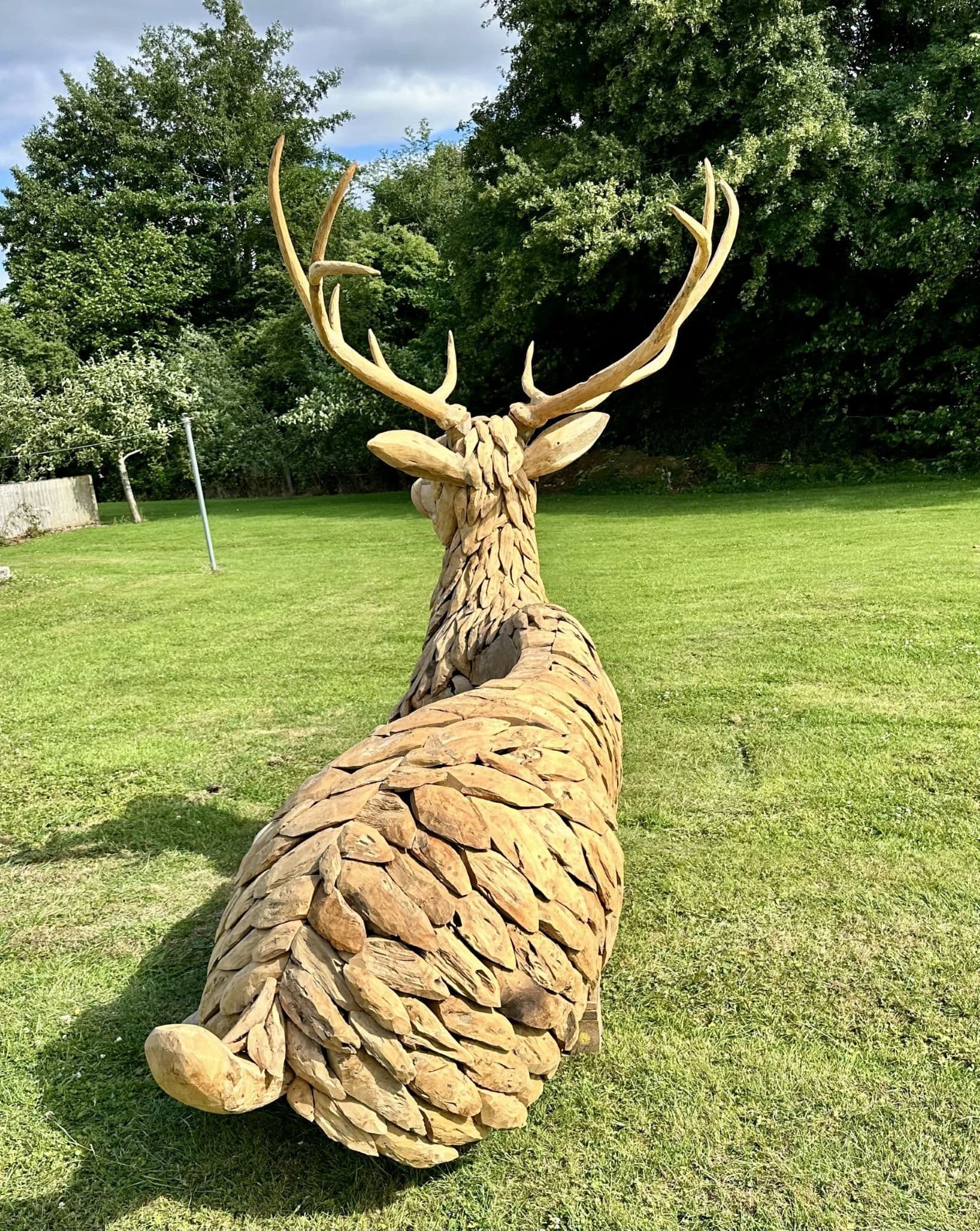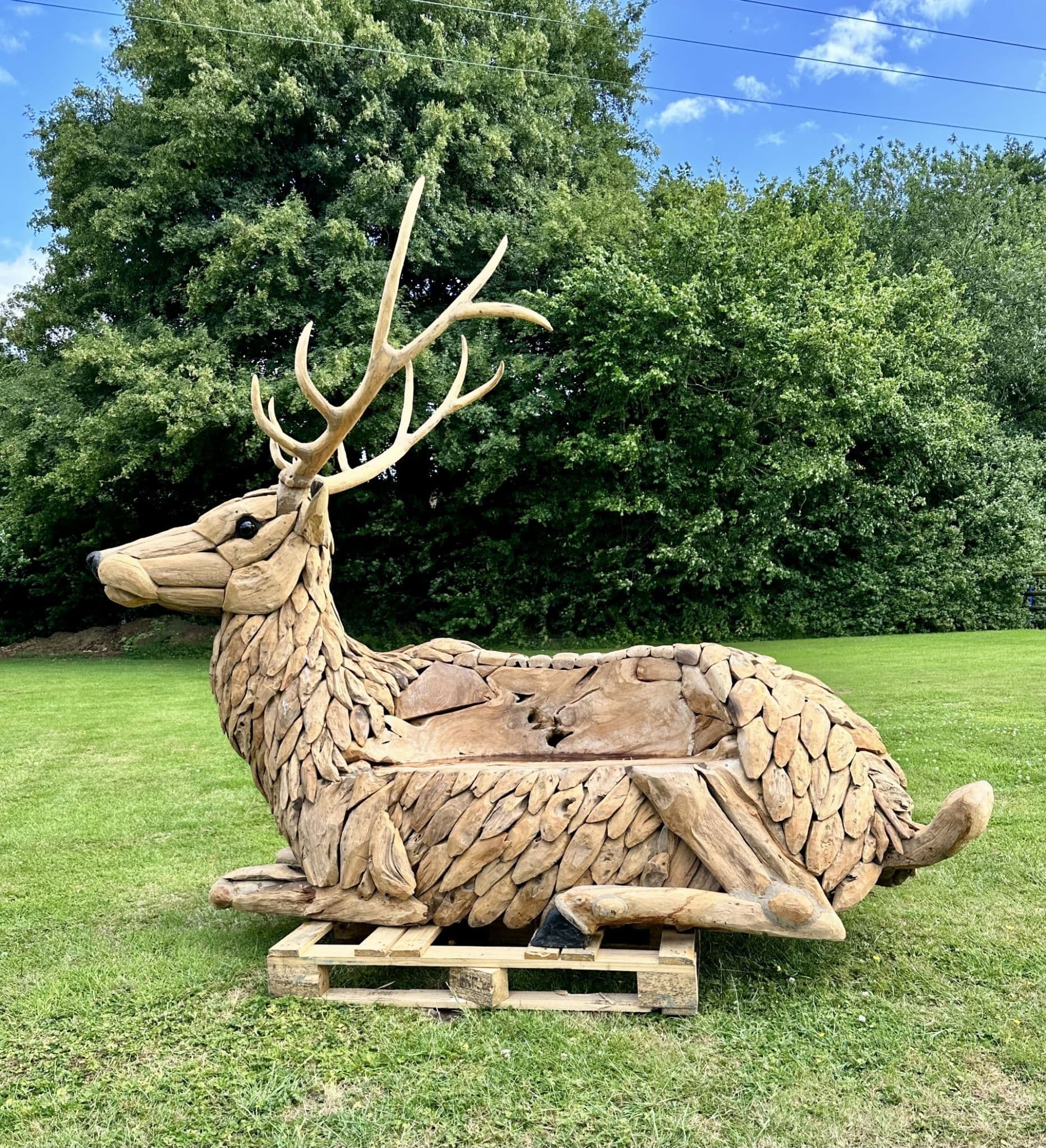 Giant Hand Crafted Teak Wood Stag Deer Statue Bench